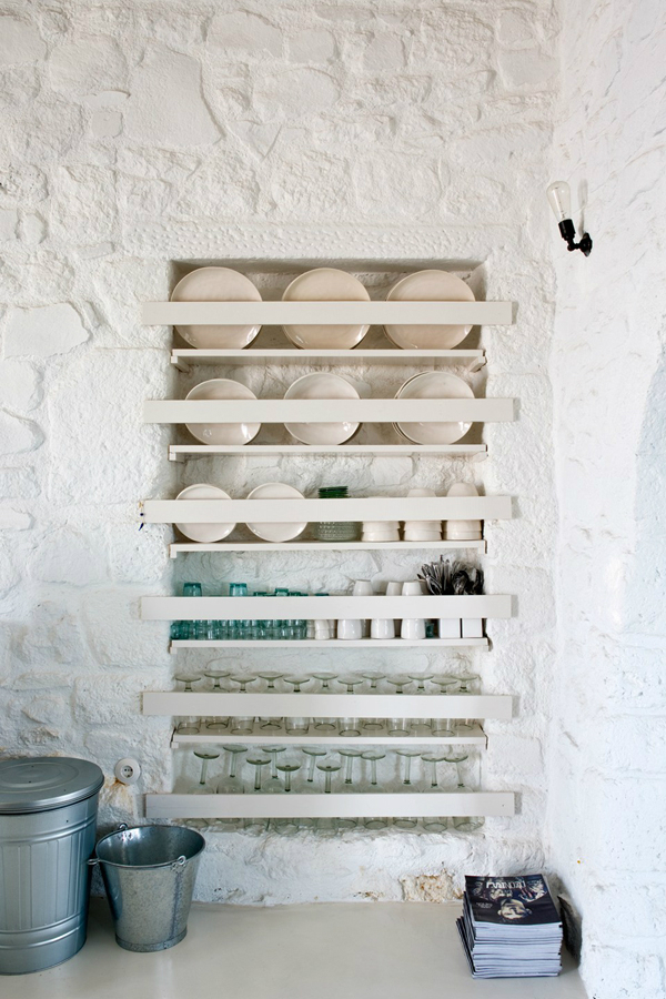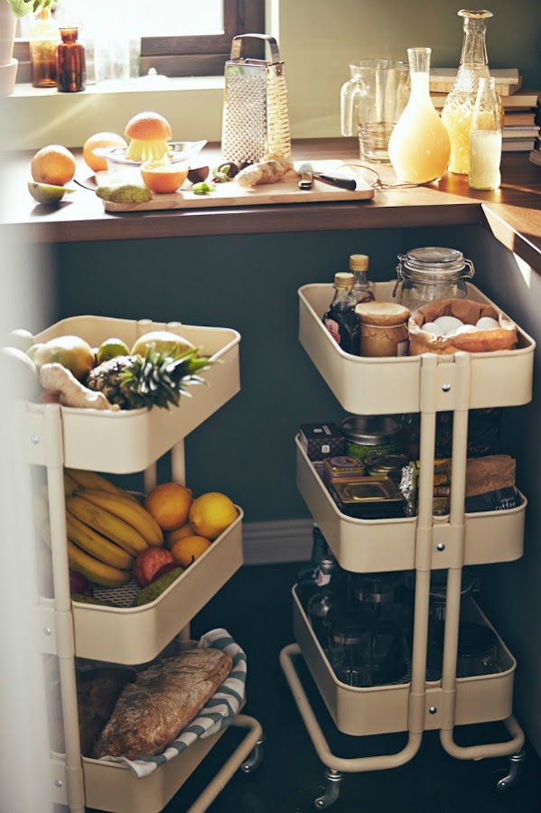 No importa si nuestra cocina es actual y moderna, industrial, rústica o vintage, el almacenaje extra y a la vista siempre queda bien si hay un orden y una exposición bonita. Podemos optar por baldas, que es lo más socorrido, a carritos de ruedas, plateros, alacenas o estanterías. Estas opciones además, siempre invitan a incluir elementos decorativos como plantas, algún cuadro, espejos, guirnaldas de luz o libros de cocina. Echad un vistazo a las fotos y decirme si os convencen estas soluciones o preferís tenerlo todo oculto.