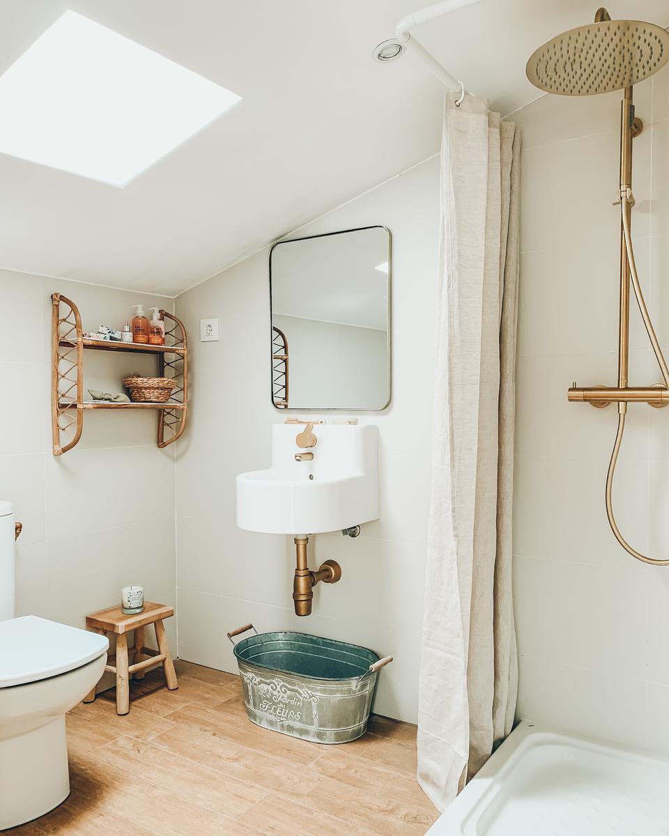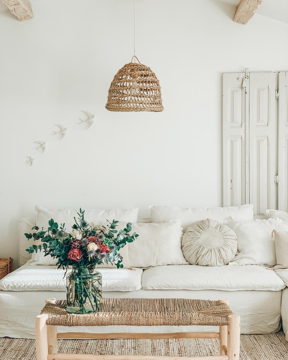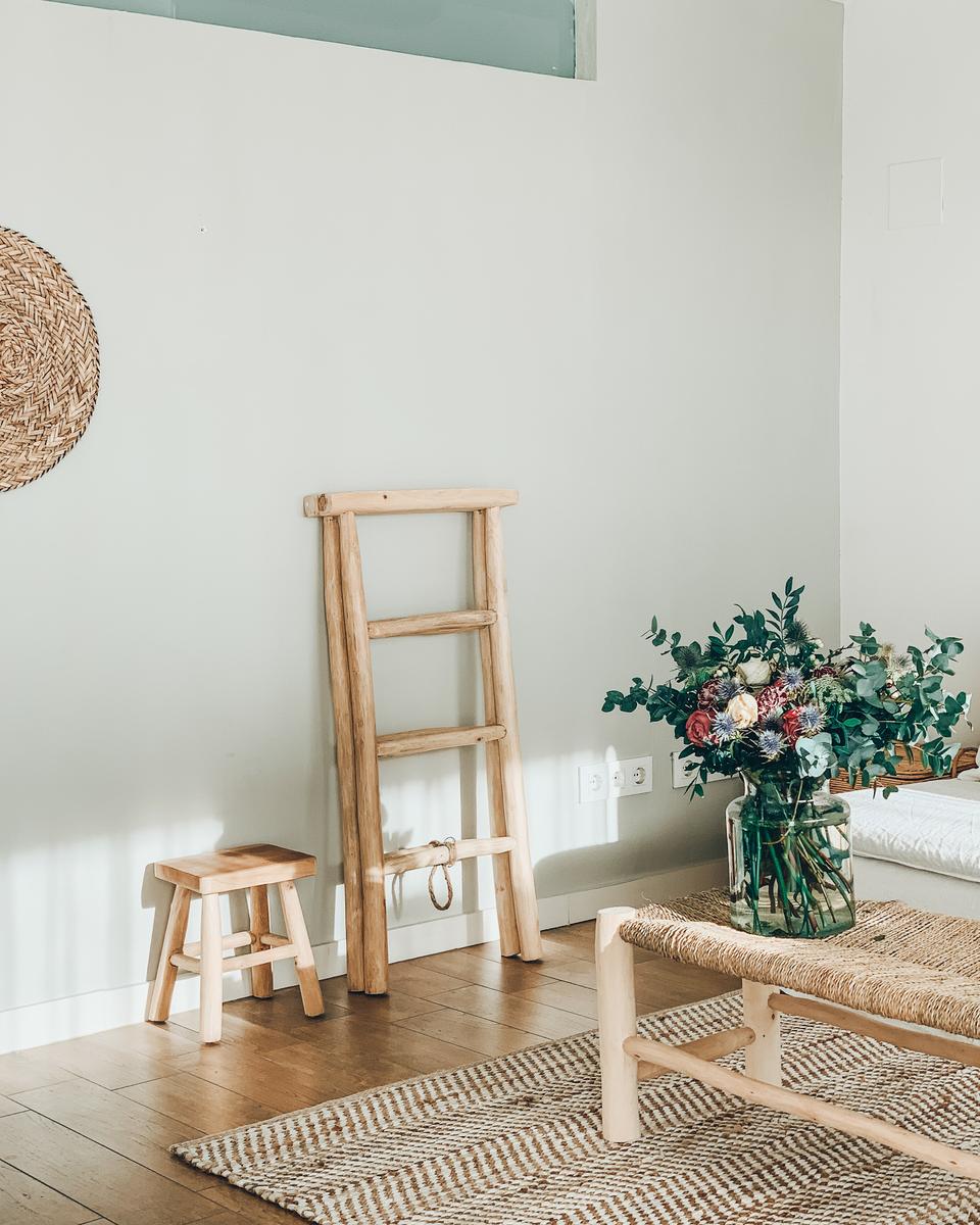 Para los que seáis nuevos por aquí, contaros que se trata de un espacio diáfano y polivalente de unos 45 m2 y terraza de 24 m2, totalmente independiente de la vivienda principal. Se ha buscado crear un ambiente relajado para su decoración, con elementos de aire rústico y mediterráneo en tonos neutros. Predominan la madera y otros materiales naturales como el lino, el yute o el ratán.