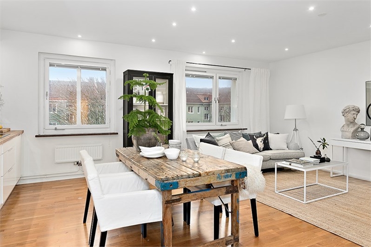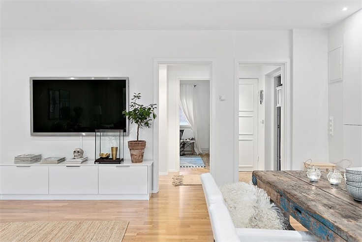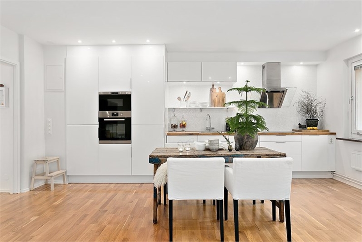 En sí, la casa de hoy es una casa de estilo nórdico bien sencilla, donde el blanco es el principal protagonista, pero la gran diferencia la marca su mesa del comedor. Una fantástica mesa de madera recuperada que sinceramente a mi me ha robado el corazón.