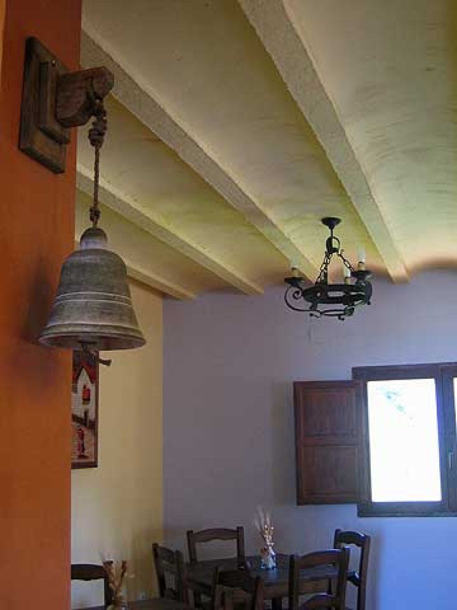 Pero la planta baja necesita de toda nuestra atención para seguir descubriendo las pinceladas con las que ha sido adornado todo el conjunto. Una campana antigua adorna uno de los pilares que soportan el comedor. En esta parte de la casa rural Entreaguas, los visitantes tienen la oportunidad de degustar el sabor de lo autóctono mientras el agua no para de fluir.