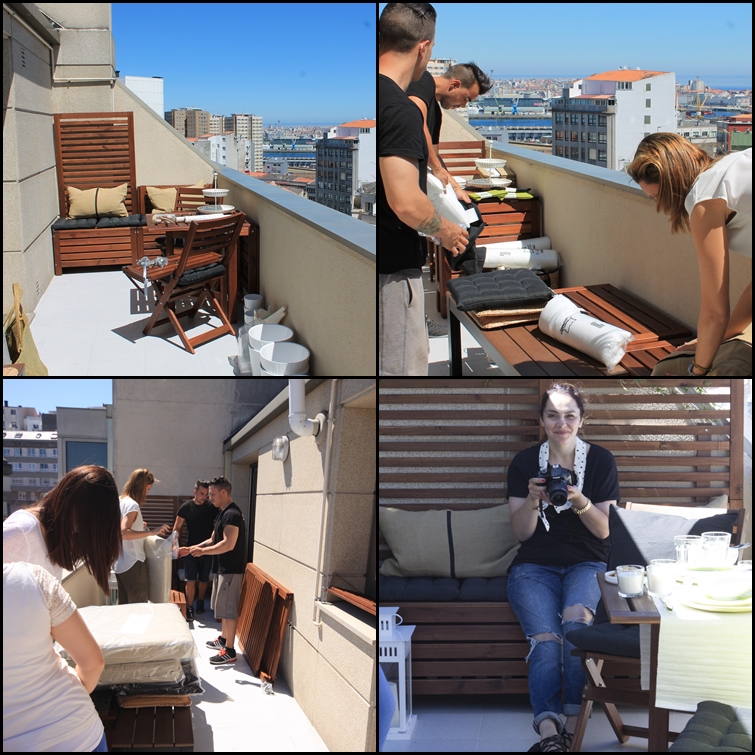 De izquiera a derecha: los chicos que nos ayudaron a montar, "Las Paulas", una de Ikea y otra de la agencia de comunicación, Amaya de Home Personal Shopper (en su blog podréis ver más fotos y más info de la terraza) y, la loca que está en el suelo, pues bueno, ya os podéis imaginar que soy yo... :):):)