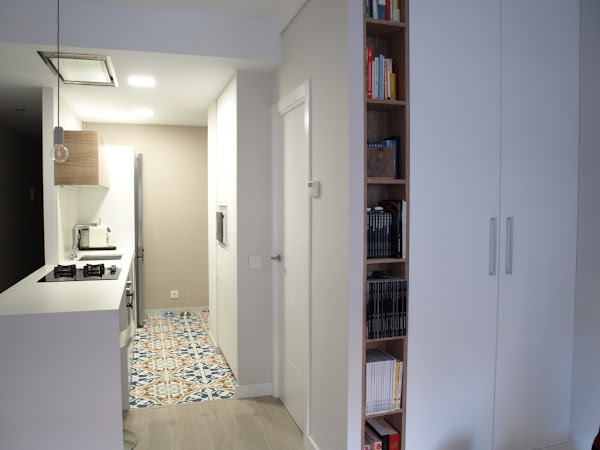 Supuso un auténtico reto proyectar esta cocina abierta al comedor, tratándose de unos espacios realmente reducidos. No podíamos desaprovechar en cualquier caso la estupenda luz natural que recibe dicho comedor, y desde el primer momento tuvimos claro que había que unificar espacios.