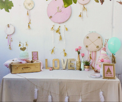 Este tipo de fiesta "Boho" queda muy bien en cualquier ocasión pero especialmente en una fiesta de pre-boda o un baby shower. A mi me parece muy bonita y fácil de copiar y muy, muy importante ¡no hay que gastar prácticamente nada porque toda la decoración es a base de papel y pintura, en fin ¿se puede pedir más?.