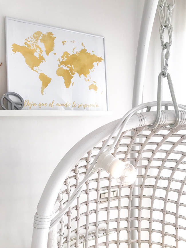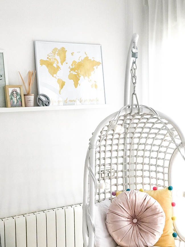 Pero vamos desde el principio, sabéis que siempre ando cambiando todo de sitio y el rincón del columpio en el salón pedía cambios a gritos. Así que cuando recibí el correo de Mapness.io, lo tenía clarísimo. ¡Era perfecto para completar la decoración!