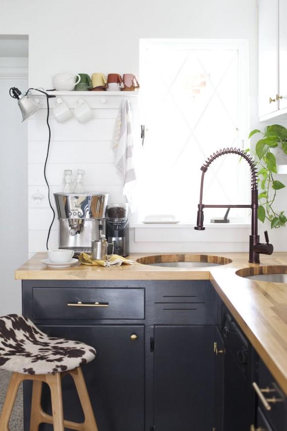 También se ha actualizado la encimera de madera y el fregadero, cambiado los taburetes y los tiradores de armarios y cajones, que se han mantenido del mismo material para mantener su estilo anterior, pero con un diseño más moderno.