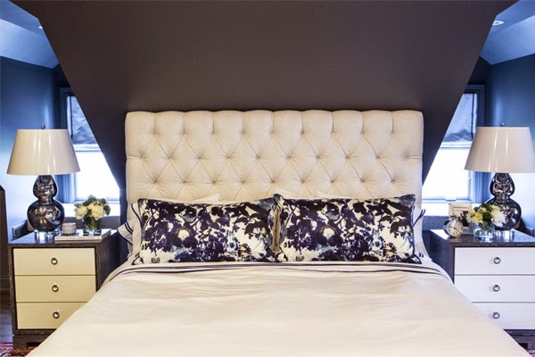 Y voìla!! Aquí lo tenéis el gran cambio, aprovechando cada rincón, sacando partido a la luminosidad con una gama de colores elegantes y sofisticados. En el dormitorio principal textiles de seda, mesitas de madera combinado 2 colores, cabecero tapizado de capitoné y alfombras vintage.
