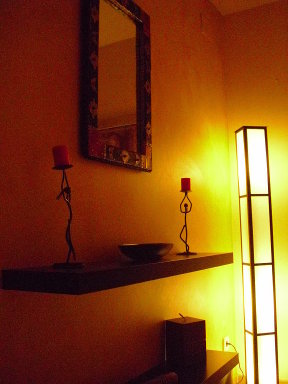 y pinte el espejo arabesco que tenia...ya que me parecía que no pegaba con la nueva deco................