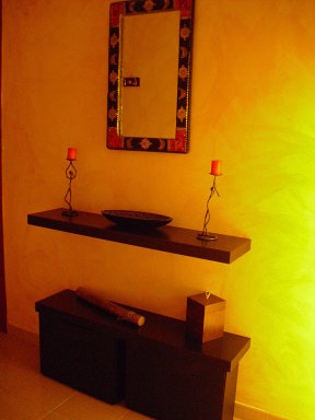 Hace tiempo hice este cambio de pintura en el recibidor..........aprovechando que puse tarima en el suelo...........