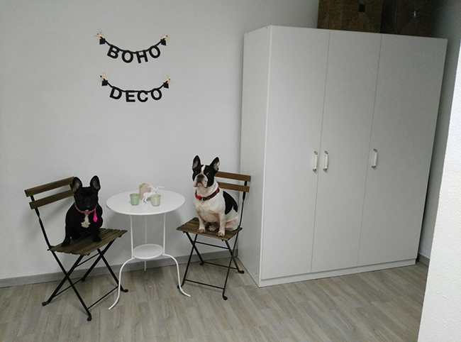Además es un suelo muy resistente, aunque es una oficina Oker y Greta vienen a diario, juegan, duermen en el suelo, beben agua, se limpia y se friega que da gusto, tiene una resistencia total, mi experiencia desde luego no puede ser mejor y si tuviera que cambiar el suelo de casa sin dudarlo pondría este tipo de suelo.