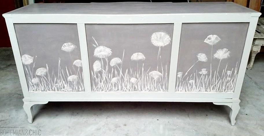 Destacar que la trasera ha sido también decorada con un motivo floral. Por lo que el aparador puede colocarse en cualquier espacio tanto del hogar como de un negocio.Ideal en zonas de paso,como isla en una cocina como mostrador en un comercio.... tiene infinitas posibilidades. En cuanto pueda te traeré un post de inspiración para que veas todo lo que se puede hacer con él ,sus múltiples utilidades y ubicaciones