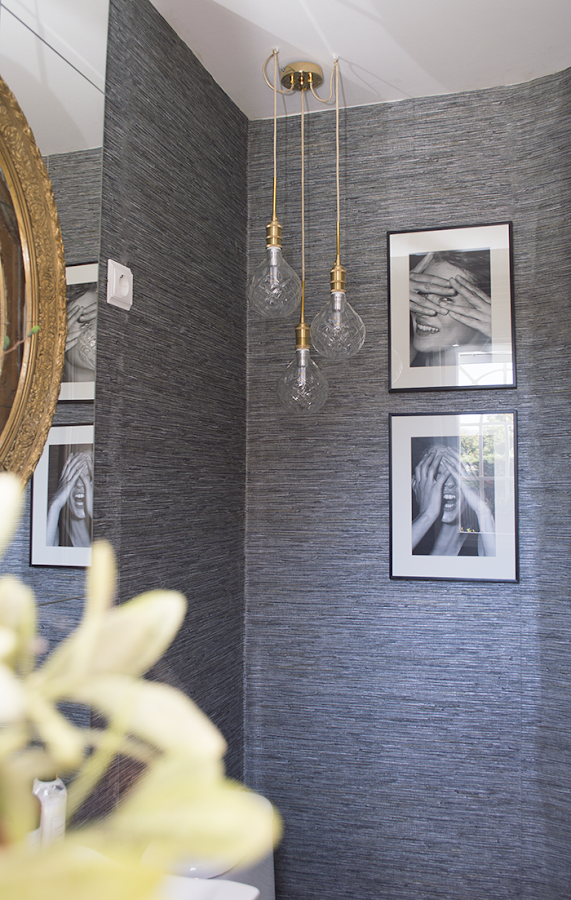 Aaaaa si, si solo añadir y recalcar que esto de cambiar el aspecto de un baño o aseo sin obras, si es posible!! Se pueden pintar los azulejos ( lo que a mi no me convence) o como veis en este ejemplo, hacer desaparecer el azulejo con aguaplast especial y después pintar o empapelar.