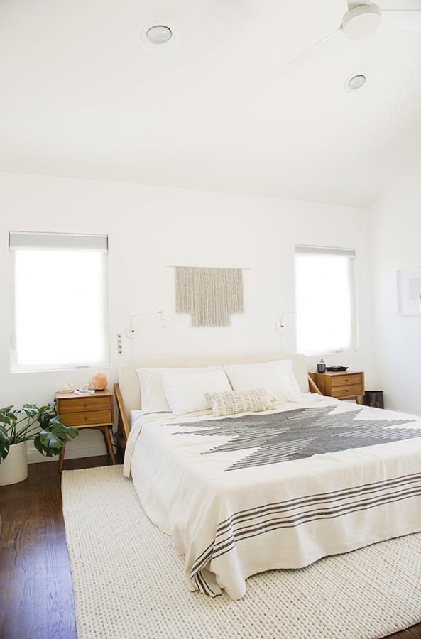 ¿Recordáis el diy de este dormitorio que triunfó mucho? Un tapiz de estilo nórdico perfecto para el cabecero de la cama (clic aquí si te lo perdiste). Pues hoy vamos a verel antes y después de todo el dormitorio, ¡¡¡A L U C I N A N T E!!! Un cambio de look de estilo nórdico, total white combinado con textiles en gris y mobiliario de madera. Un espejo al lado de la cama para dar profundidad, y un rincón de lectura y tv con butaca y aparador, acaban de completar el conjunto.