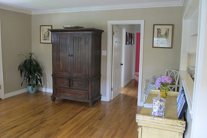 La transformación de esta casa nos tiene fascinadas, su cambio es tan alucinante que no merecía un post sino varios antes y después para poder apreciar el cambio de cada habitación. Así que después de enseñaros la cocina, el salón yel dormitorio, hoy le ha tocado el turno a uno de los espacios que más llaman la atención. En el antes vemos un espacio de recibidor bastante amplio pero con una decoración muy pasada de moda. El acierto total es que lo han convertido en una zona de estar súper agradable que se une por un lado al comedor, y por el otro da paso al pasillo y las habitaciones. Dos espacios en uno: sala de estar y recibidor.