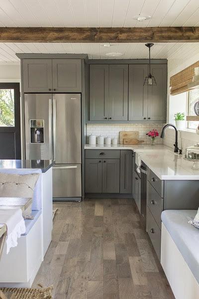 Y además nos encanta cómo utilizan diferentes mobiliarios y encimeras de cocina para diferenciar los diversos usos y zonas; una idea muy buena si quieres un toque sutil y con estilo.