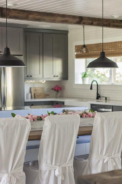En el después encontramos una cocina con office totalmente renovada: paredes, suelo, techo, mobiliario, y mil detalles que la hacen actual, preciosa y acogedora.