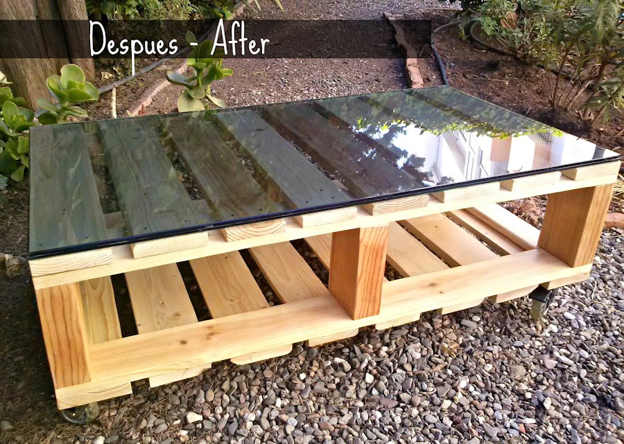 Para acompañar a este cristal pensé que la mejor opción sería ponerlo en un palet. Pero los que tenia no se ajustaban a las medidas del cristal así que opte por hacer un palet nuevo a partir de las maderas de los otros. Desmonté los palets y corté las maderas a las medidas que necesitaba. Una de las cosas que he cambiado respecto a un palet normal es la altura. Decidí ponerlo mas alto para poder ganar todo el espacio intermedio para guardar revistas, mantas, cajas....