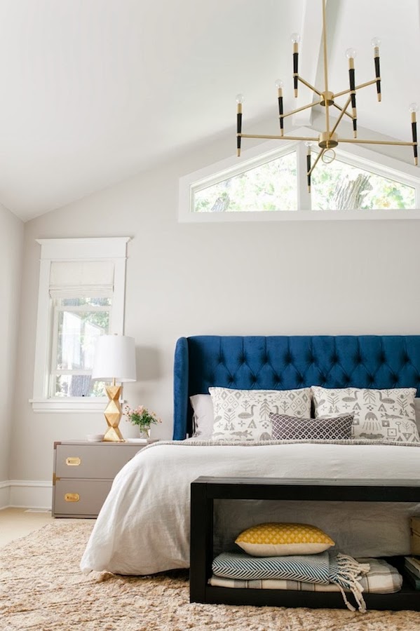 Es cierto que no somos muy de azules. De hecho, pocas veces habréis visto en el blog DECO en ese color. Quizá sea porque la asociamos al verano y al buen tiempo (sugestión 100% nuestra, porque hay mil matices de azul, cada una con su esencia y es una tontería, pero...), pero nos da mucha pereza ese color. Sin embargo, el dormitorio de hoy, que mezcla azulones, con blancos y grises, no puede gustarnos más!!