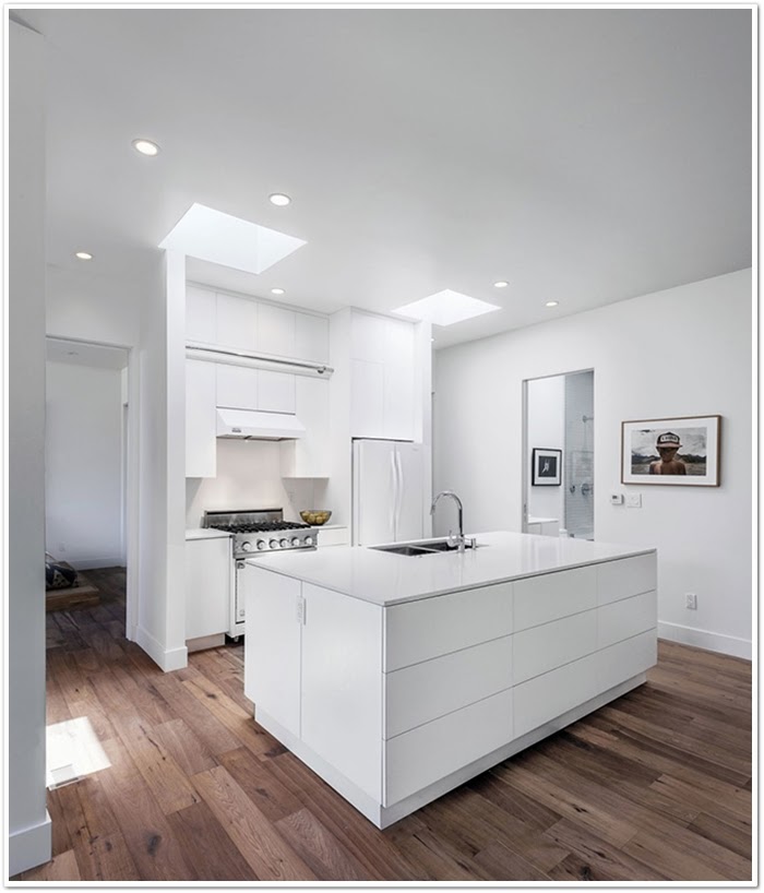 ¿Que os parecería aparcar en la azotea de vuestra propia casa? A mi las imágenes me han dejado alucinada. Debido al terreno escarpado esta casa fue diseñada para flotar sobre la ladera y la única manera de acceder a ella es por el puente. Otro buen trabajo de arquitectura que esta vez viene de manos de Anonymous arquitectos. Por lo demás que decir........,una casa con unas vistas espectaculares situada en Los Ángeles, en la que el color blanco multiplica la luz que entra por los grandes ventanales. Absolutamente enamorada de su cocina de concepto abierto con ese suelo cálido, pero lo que realmente me ha dejado boquiabierta es el exterior, aparcar en la azotea de tu propia casa tiene ser un puntazo. ¿O no?