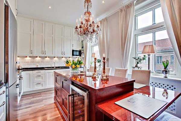 La luz se derrama desde las numerosas ventanas. El comedor tiene capacidad para muchas personas sentadas. En el interior del comedor se encuentran la encantadora habitación de la torre, cuya forma redonda proporciona un personaje encantador. La isla de la cocina construida en el sitio de caoba ha incorporado un enfriador de vino e invita a socializar agradablemente. Junto en la cocina hay una sala interior, que está decorada con almacenamiento de vino de piso a techo. También hay un enfriador de vino. El baño integrado tiene paredes de azulejos blancos y comprende una ducha de esquina, inodoro, encimera con lavadora, lavabo y calentador de toallas. También se puede disfrutar de un hermoso balcón en su estado original, situado en el norte frente al sol de la tarde.