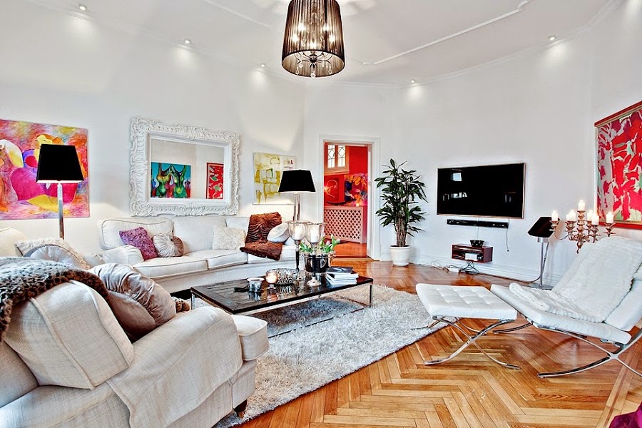 El amplio vestíbulo está acabado y ofrece un buen almacenamiento y gran armario. Desde el pasillo conduce al baño de invitados. En un lugar alto y abierto se encuentran tres salones. La sala de estar es abundante y sustancial. El piso está decorado con un suelo de parquet de roble de espiga y focos empotrados en el techo. Entre el salón y el comedor han sido tomadas por una pared para obtener más espacio abierto.