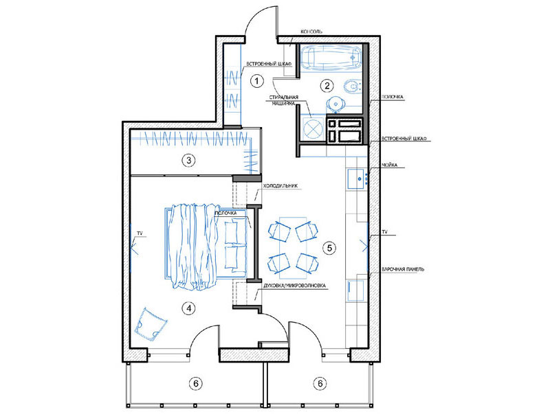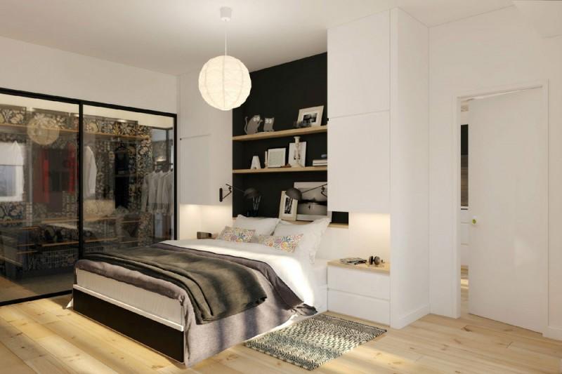 El programa de necesidades desarrolla un mini espacio en el que se accede por un hall de entrada a una cocina que hace las veces de estar y comedor; un dormitorio con vestidor y un baño con bañera completo, en tonos blanco, negro y madera. Las paredes con motivos florales de la zona de vestidor, rompen el esquema de color monocromo y se comunica, de forma brillante, con una carpintería en vidrio y metal, con el dormitorio. Textiles neutros, linos ligeros y la madera, ayudan a crear un ambiente de calidez frente al blanco más frío. La simplicidad y la armonía se dan la mano en un proyecto lleno de sentido práctico desde un punto de vista escandinavo.