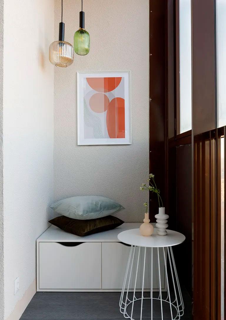 Por cierto, que no he hablado de recibidor, pero para una casa de 50 metros cuadrados, es una buena carta de presentación. Cálido, amplio, con un generoso armario y espejos que multiplican tanto el espacio como la luz. En la entrada el suelo no es de madera sino cerámico, más fácil de mantener y limpiar para una zona con mayor tránsito. Un acierto.