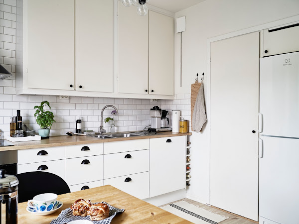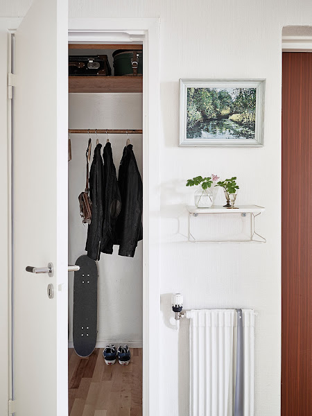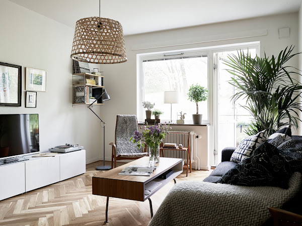 No le vamos a negar a los suecos el buen gusto que tienen para decorar después de ver este bonito apartamento. Lo que más me llama la atención en mucha de la decoración nórdico es la falta de cortinas, cosa que en parte entiendo, ya que ellos no tienen esa intensidad de luz que vemos ahora mismo durante todo el año y una cortina quita mucha luz. Será mi defecto de tapicero y siempre echo de menos aunque sean unos visillos que vistan del todo la estancia.