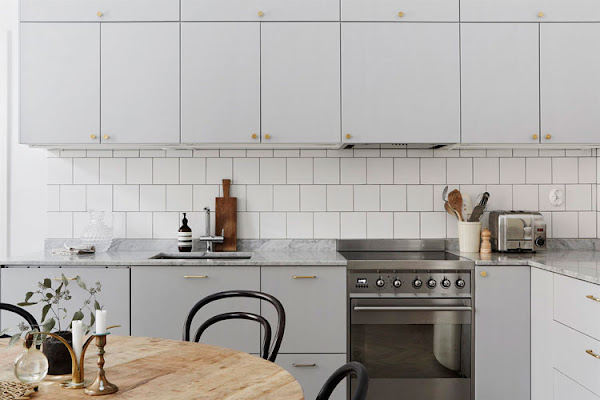 Creo que las casas nórdicas que más me gustan son aquéllas que combinan sencillez, con un cierto punto elegante. Ventanas grandes y con arcos, techos altos, suelos originales acuchillados, mármol en encimeras... Esas cosas marcan la diferencia, no os parece?