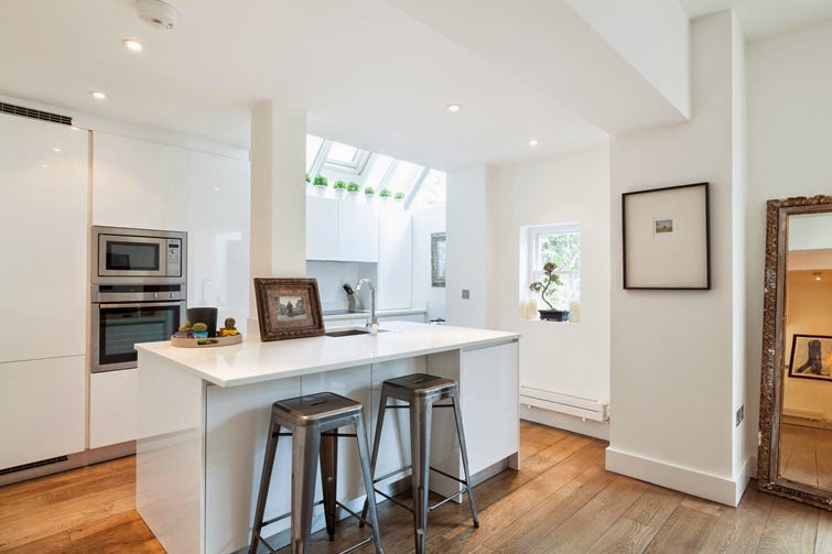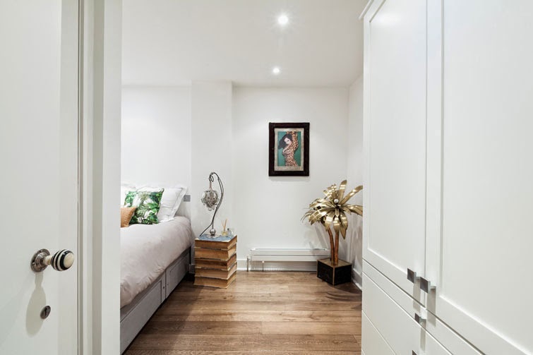 En cuanto al resto de este increíble apartamento, deciros que ocupa una planta baja, en la zona de Little Venice, en Londres, y está formada por la gran cocina-sala de estar, dos dormitorios y un par de baños. Todos con acabados sofisticados y con ese aire decoración cosmopolita de la capital británica. Os gusta?