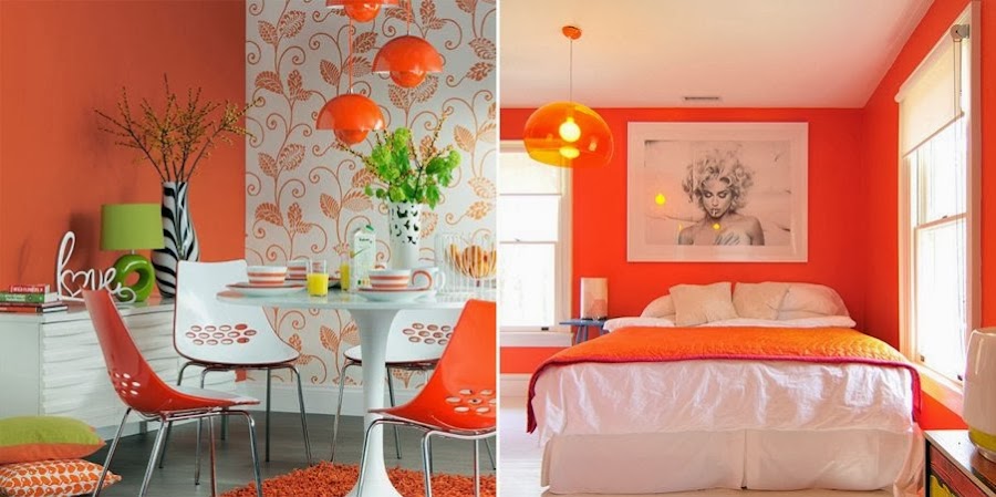Naranjas: Este color surge de la mezcla del rojo con el amarillo por lo que tiene la luminosidad del amarillo y la vitalidad del rojo, por ello se considera un color radiante. El anaranjado nos ayuda a resaltar el mobiliario y a generar ambientes cálidos y acogedores. Para su equilibrio requiere la mezcla de algún color frio como en las fotos se mezcla con el blanco.