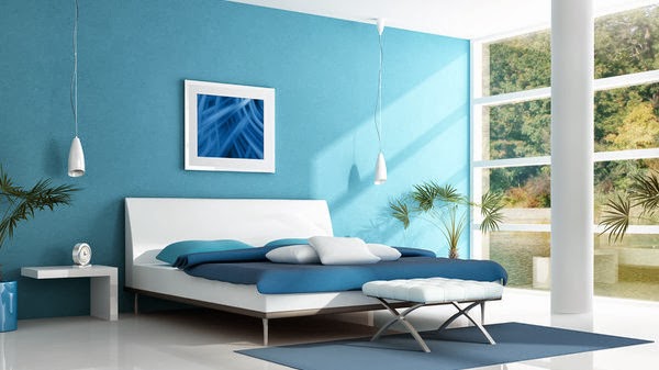 Azules: El color azul simboliza el océano, el mar, el cielo. Es por eso que es un color relajante y tranquilo. Si hacemos una combinación sólo con tonalidades de azul se generan espacios fríos, sin embargo estos se pueden equilibrar con el uso de colores cálidos. Se recomienda su uso en espacios en los que se requiera relajarse. Por lo general, se evita su uso en comedores, entradas y escaleras.