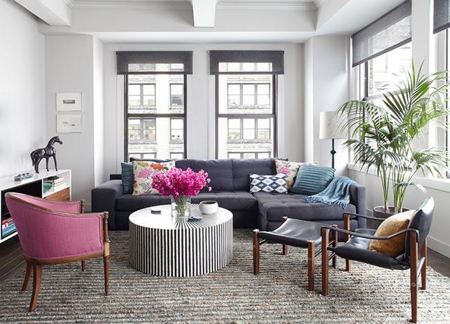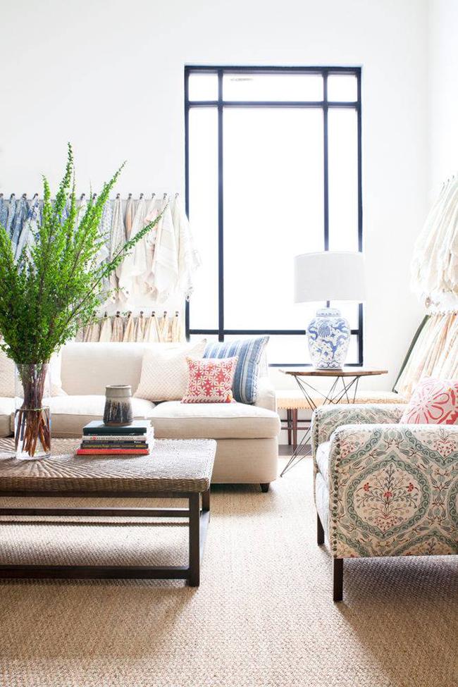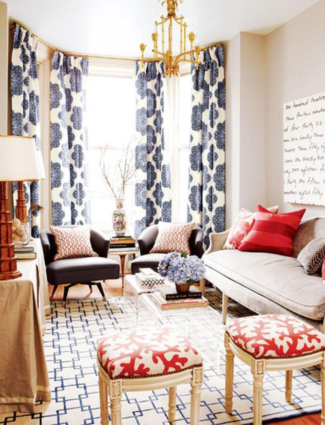 Lo más sencillo es partir de una pieza como una alfombra o unas cortinas que tengan un dibujo importante. Es decir, la de mayor carga visual: un patrón con movimiento, una escala grande y varios colores.