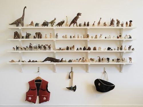 Si ya has elegido las mejores piezas de tu colección tal y como te comentaba antes o si tu colección no es muy grande, lo mejor que puedes hacer a continuación es organizarla. Y con organizarla me refiero a decorar con ella con cierto criterio. Por ejemplo podrías colocarlas por color, por año, por tamaño.... de la forma que prefieras pero que mantenga un orden estético. En la primera imagen que te mostraba puedes ver un claro ejemplo de organización por color. ¿No queda genial?