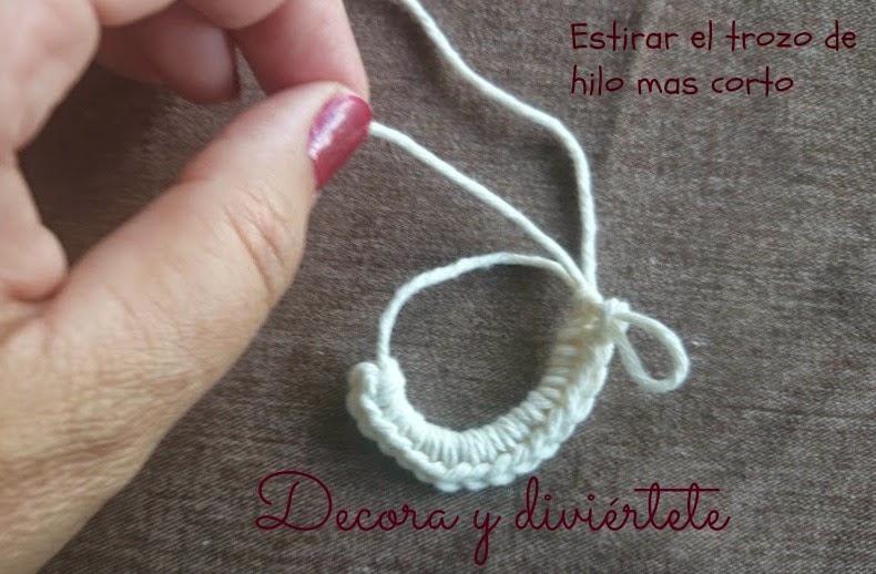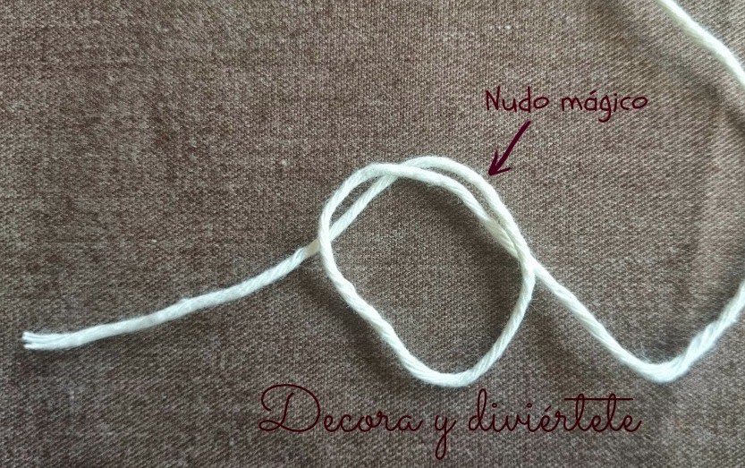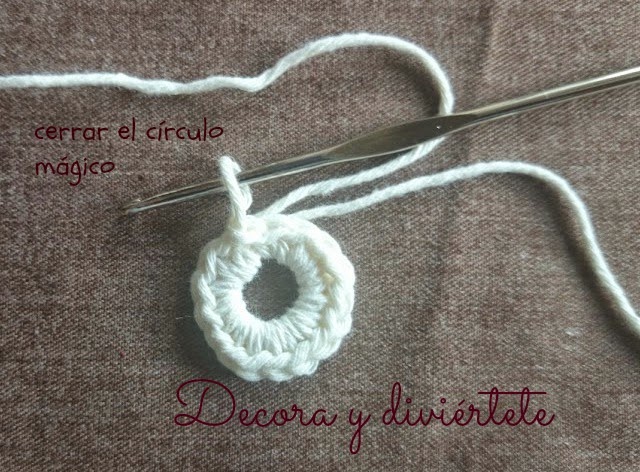 Cuando ya tengáis los 15 puntos bajos hechos tenéis que estirar el hilo mas corta para cerrar el círculo mágico