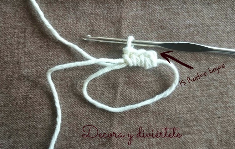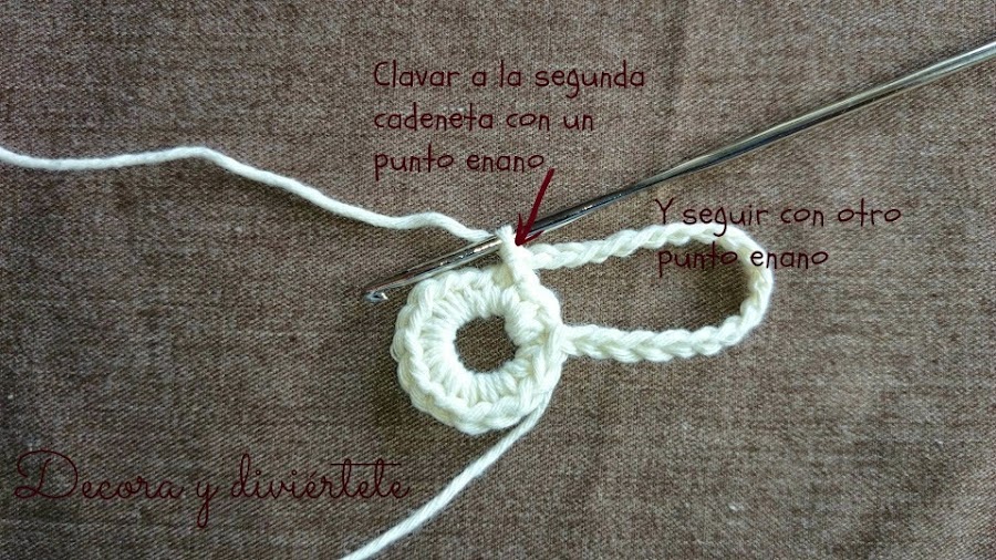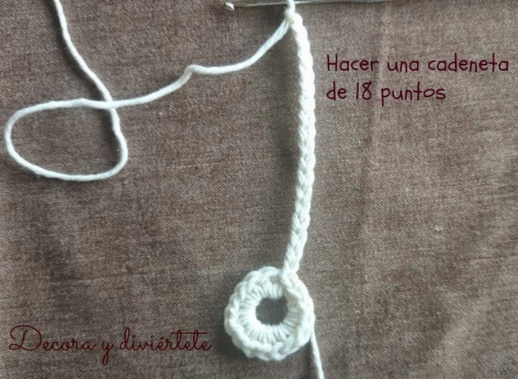 - Una cadeneta de 18 puntos y unir con punto enano y seguidamente hacer otro punto enano