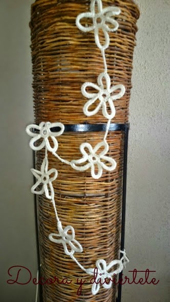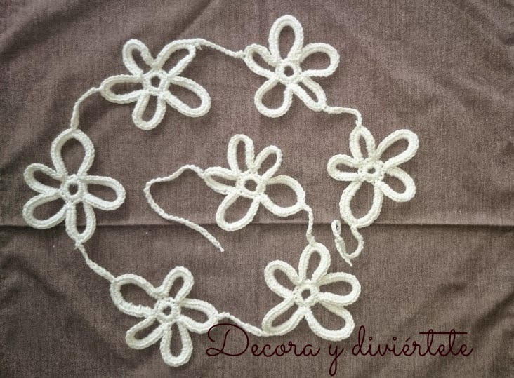 Después solo os queda unir las flores con unas cadenetas para tener la guirnalda