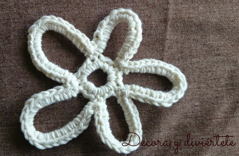 Os tengo que decir que no las he visto nunca, son unas flores de ganchillo que las he diseñado yo a mi manera, y que espero que os gusten ya que no son las clásicas flores de ganchillo haciendo los cinco pétalos iguales.....