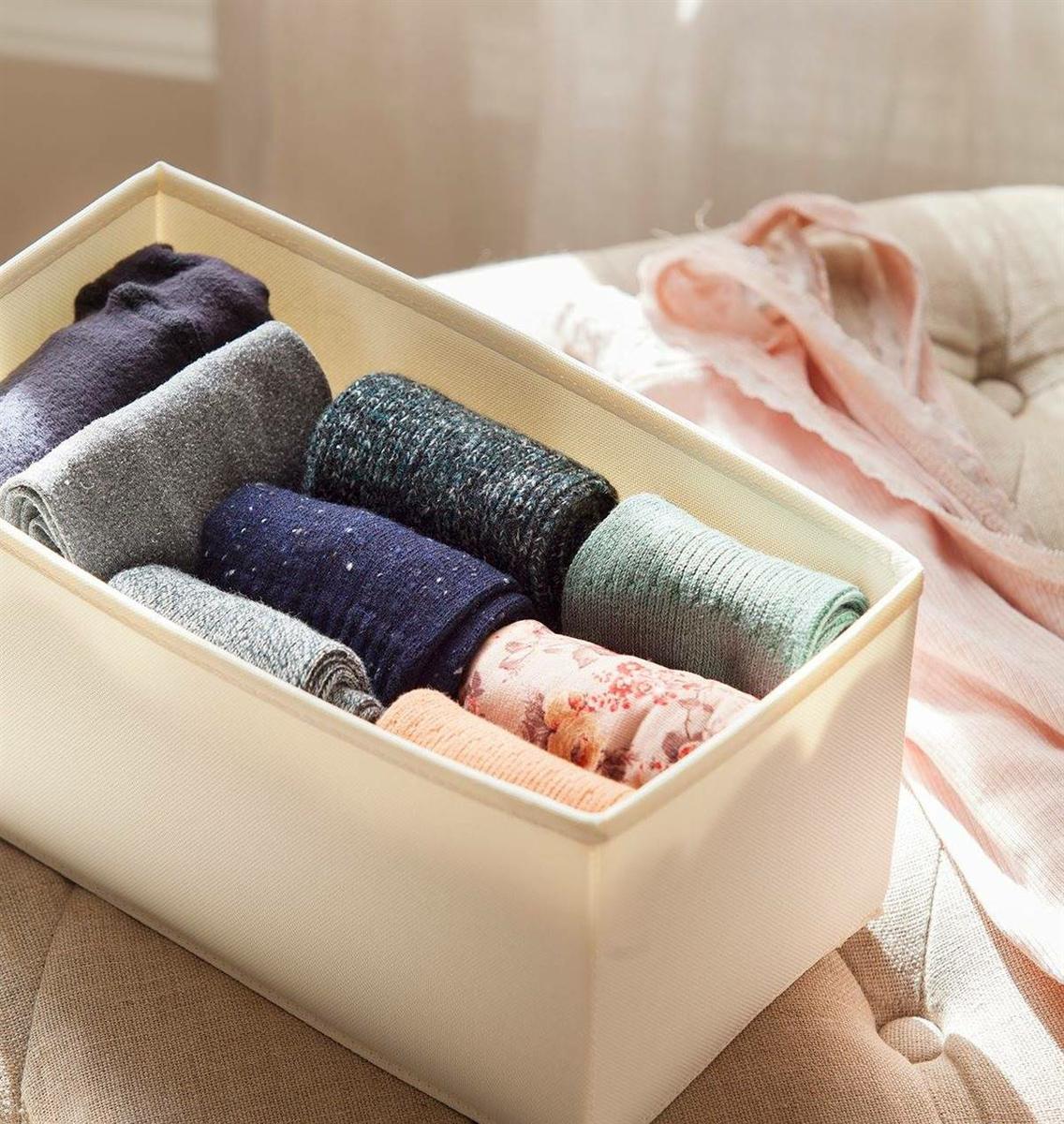 Fuente: pinterestLos calcetines no los guardes en una bola, doblados en vertical y emparejados. Con las medias puedes hacer lo mismo.