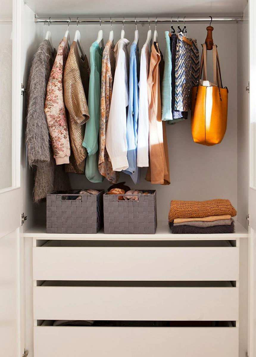 Fuente: gd-home Ordena el armario con el método de Marie Kondo. Para poner orden primero deshazte de cosas que no utilices. Deja solo lo que utilices, te queda bien y te hagan feliz.
