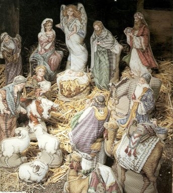 Fijaos en este precioso nacimiento con figuras en punto de cruz