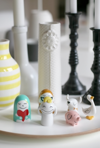 con recipientes de porcelana de Ikea y pequeños abetos (click)