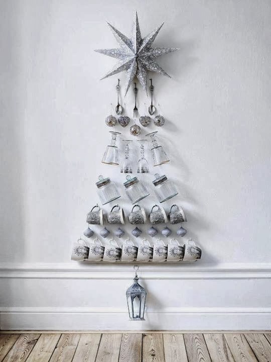 9.-Imaginación y buen gusto, es lo que define a este árbol de navidad con copas, vasos, tazas, cubiertos.......