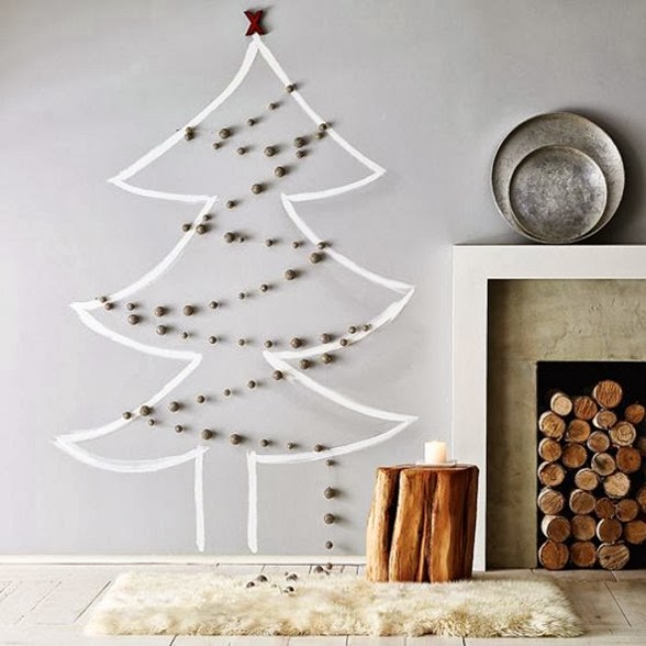 11.-Mas fácil imposible, no hay escusas para realizar un árbol con cinta washi-tape. Luego añades una guirnalda y listo.