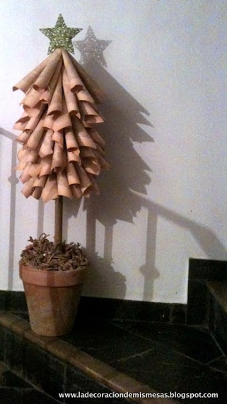 Este árbol de papel de libro fué de los que más me ha gustado hacer y de coste 0 (la foto no puede ser peor, lo sé pero... es la que tengo).