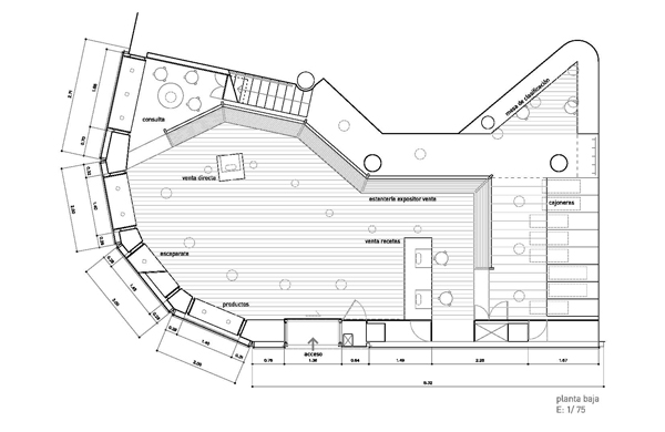 Un proyecto con una potencia visual muy efectiva y una arquitectura interior muy acorde con el enfoque actual de las farmacias, interpretándola como algo más que un depacho de medicamentos.