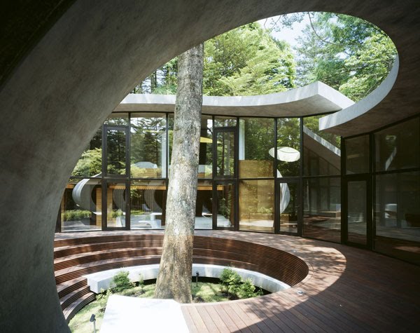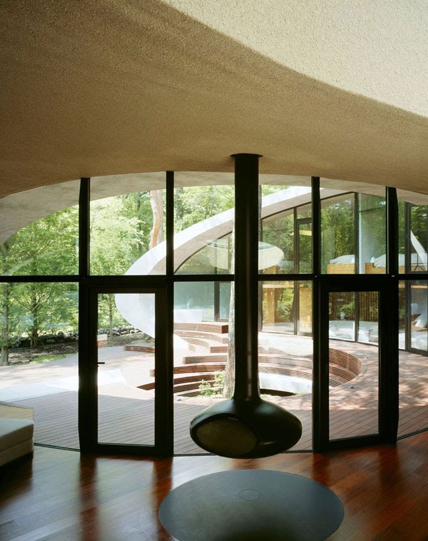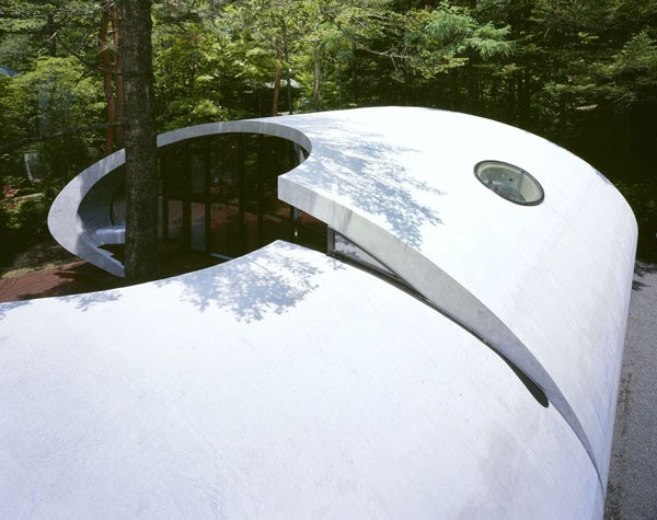 El arquitecto Kotaro Ide de ARTechnic Japan ha querido construir una vivienda de concepción moderna que supere las incomodidades del riguroso clima del lugar y ofrezca confort a sus habitantes los fines de semana de descanso, en confianza de que la orgánica pero extraña estructura armonice con el paisaje tras el paso del tiempo.