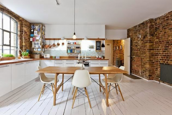 He de reconocer que últimamente mi cabeza concibe la cocina y el salón como una única estancia. La casa londinense que visitamos hoy es otro de los tantos ejemplos que hemos visto, en el que además, al dúo cocina ? salón se une la zona de trabajo.