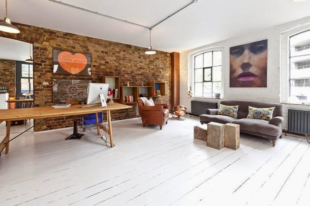 Techos altos, paredes de ladrillo visto, tarima blanca y unas fabulosas ventanas originales es el marco perfecto para una decoración industrial muy personal.