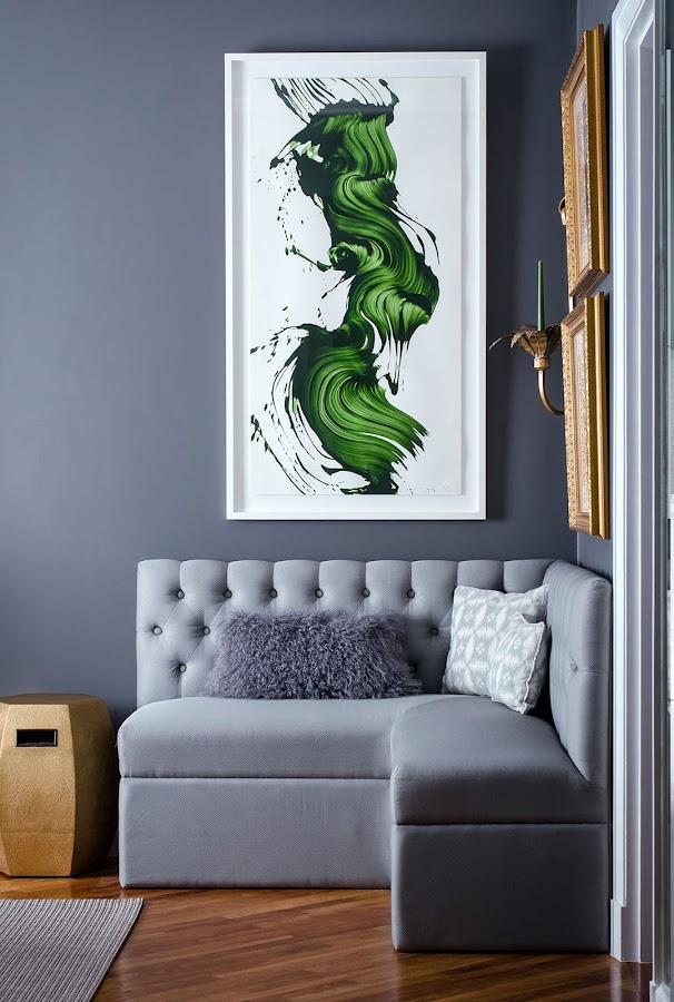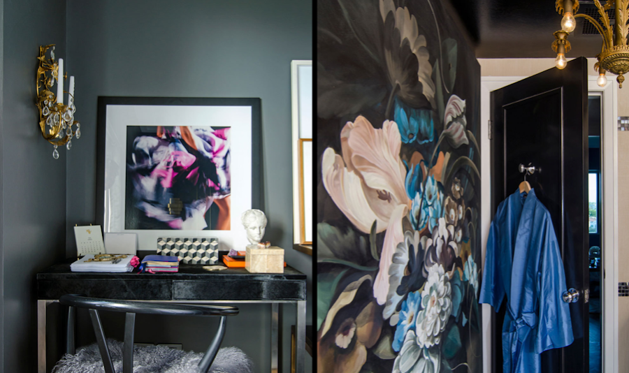 En las zonas más privadas de la casa, la gama cromática sigue siendo la misma, y encontramos detalles efectistas en cada rincón: obras de arte, murales de flores, fotografías de moda, múltiples cojines con texturas diferentes...lo curioso, es que a pesar de tanta sofisticación y rollo "high class" la vivienda sigue pareciendo cómoda y acogedora, no os parece?