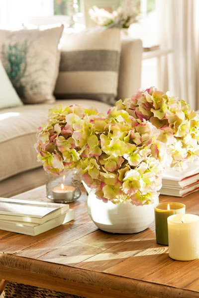 Aunque creo que hoy por hoy, nunca recurriría al uso de una "planta artificial" completa para decorar un rincón de casa, en detrimento de una natural. Sí, me inclino por las flores, ramas u hojas artificiales en solitario o en conjunto formando pequeños conjuntos sencillos...